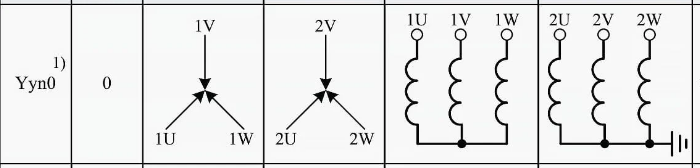 Yyn0:意思是高壓Y接,也就是星形接,低壓也是y接,低壓中性點引出,高低壓側(cè)相位角為時鐘上面的0時。